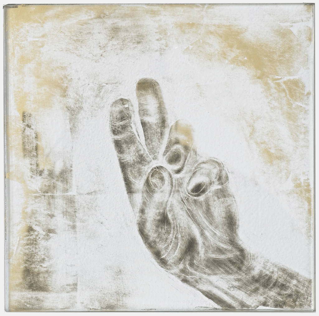 These works are an ongoing expanding series using drawings of hands of people close to me. They are 22k gold leaf on glass in an adapted verré eglomisé technique. |